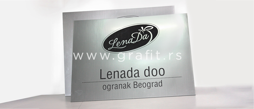Natpisne ploče za vašu firmu, kancelariju ili trgovinu izrađujemo laserskim graviranjem ili direktnom UV štampom.
